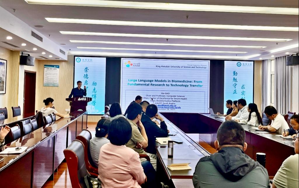 随后,高欣教授以“大语言模型在生物医疗中的研究进展和应用前景”为题做了学术报告,系统阐述了人工智能技术如何赋能生命健康领域发展,并从AI辅助疾病诊断和创新药物研发等角度切入,深入浅出地展示了学术前沿动态,介绍了他所带领的团队在基于CT影像数据分析开发的人工智能疾病诊断模型、全球首个多模态皮肤病诊断大模型SkinGPT-4、基于多模态大模型构建的多肽类创新药物设计平台PepGPT等方面取得的一系列突破性成果。在互动交流环节,双方就蛋白质结构折叠的计算模拟、代谢产物精准识别的技术瓶颈、空间转录组数据的深度解析、多肽与靶点结合位点的预测等关键科学问题,展开了深入地探讨。