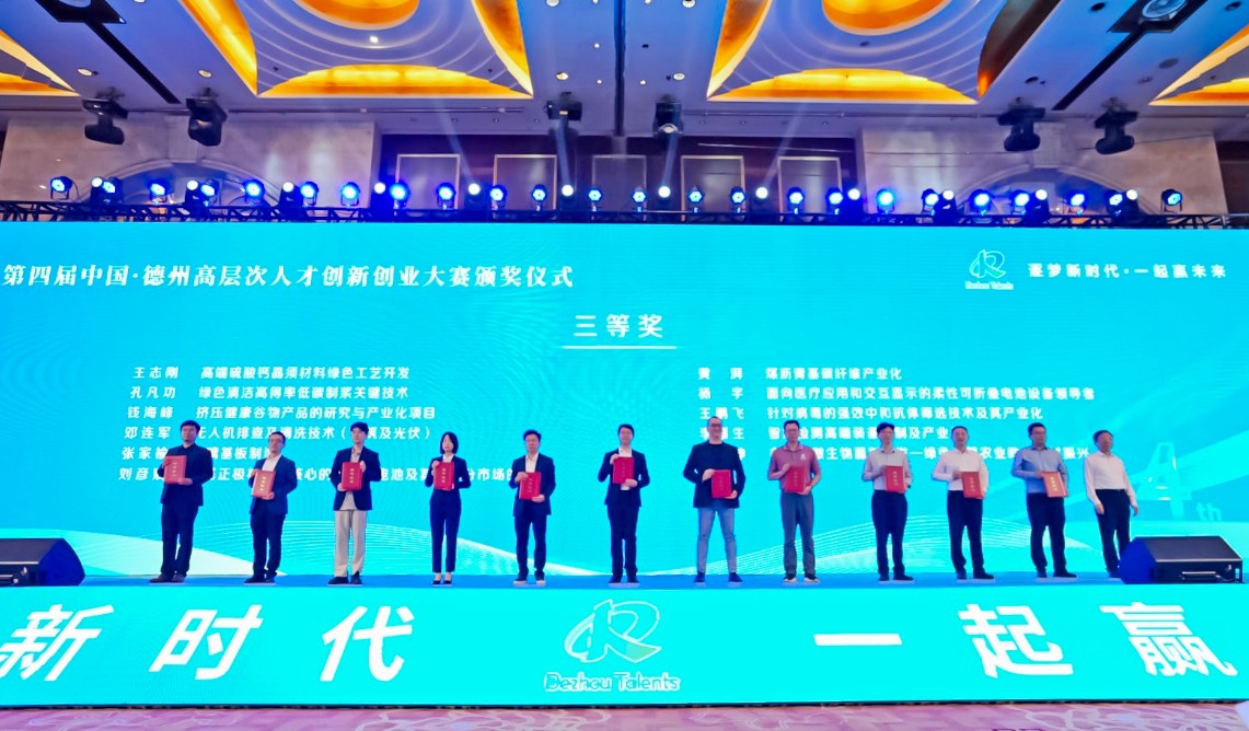 9月27日至28日,以“逐梦新时代·一起赢未来”为主题的第四届中国·德州高层次人才创新创业大赛总决赛、颁奖仪式暨京德科技人才合作交流大会在德州市隆重举行。经过初赛、决赛和排位赛激烈角逐,化学化工学院王志刚教授团队参赛项目“高端硫酸钙晶须材料绿色工艺开发”获得创新组三等奖,王烟霞副教授团队参赛项目“糠醛渣木质素的绿色提取工艺开发”获得创新组优胜奖,取得学院在该类赛事新突破。