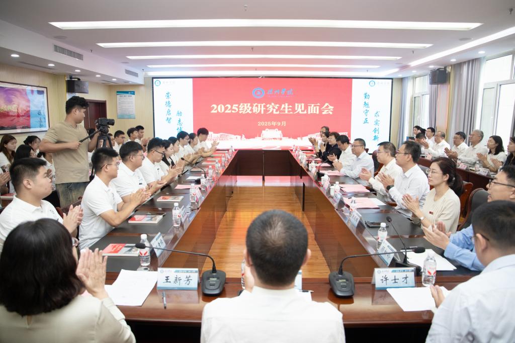 经过为期两天的温情迎新,38名2025级硕士研究生怀揣梦想与期待顺利入学。9月8日上午,学校举行“启航新程,智汇德院——2025级研究生见面会暨‘开学第一课’”,共同欢迎首届硕士研究生加入德州学院大家庭。党委书记吴君,党委副书记、校长赵长林等党委班子成员出席。党委委员、副校长李甲亮主持见面会。