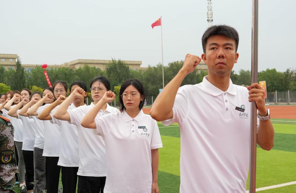 新生军训动员中,德州武警支队负责军训同志宣读军训教官编程,并作军训动员讲话,激励同学们坚定理想信念,厚植爱国情怀,在军训中锤炼意志、砥砺品格,以最美的奋斗姿态,展现新时代大学生青春风采。
