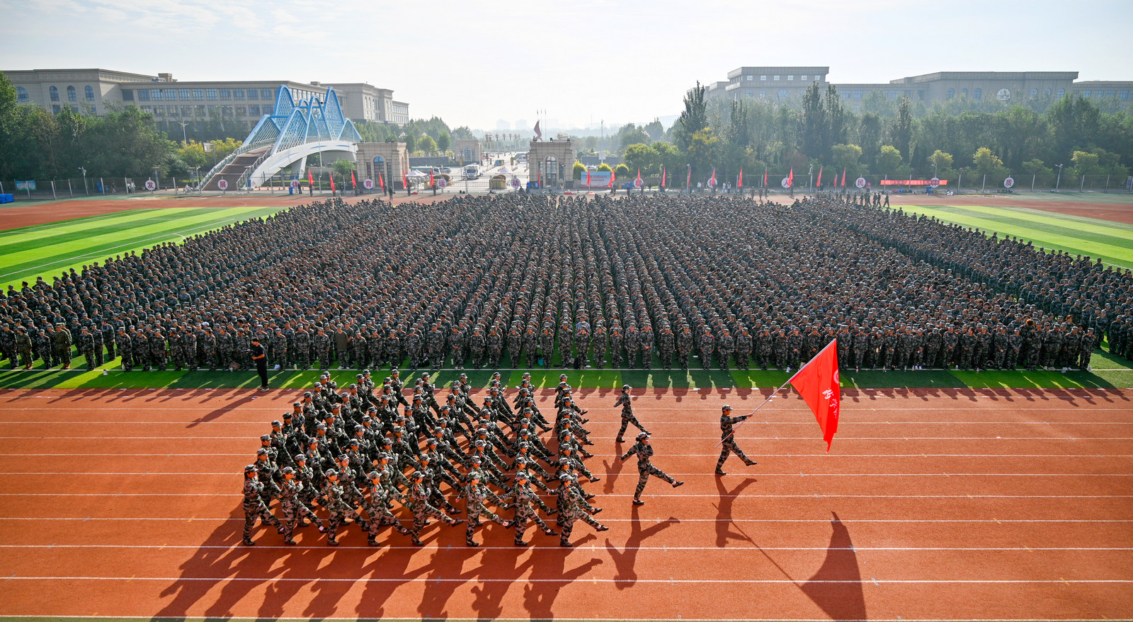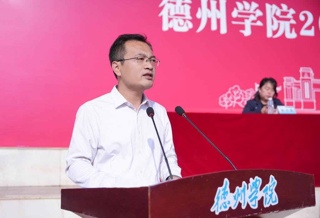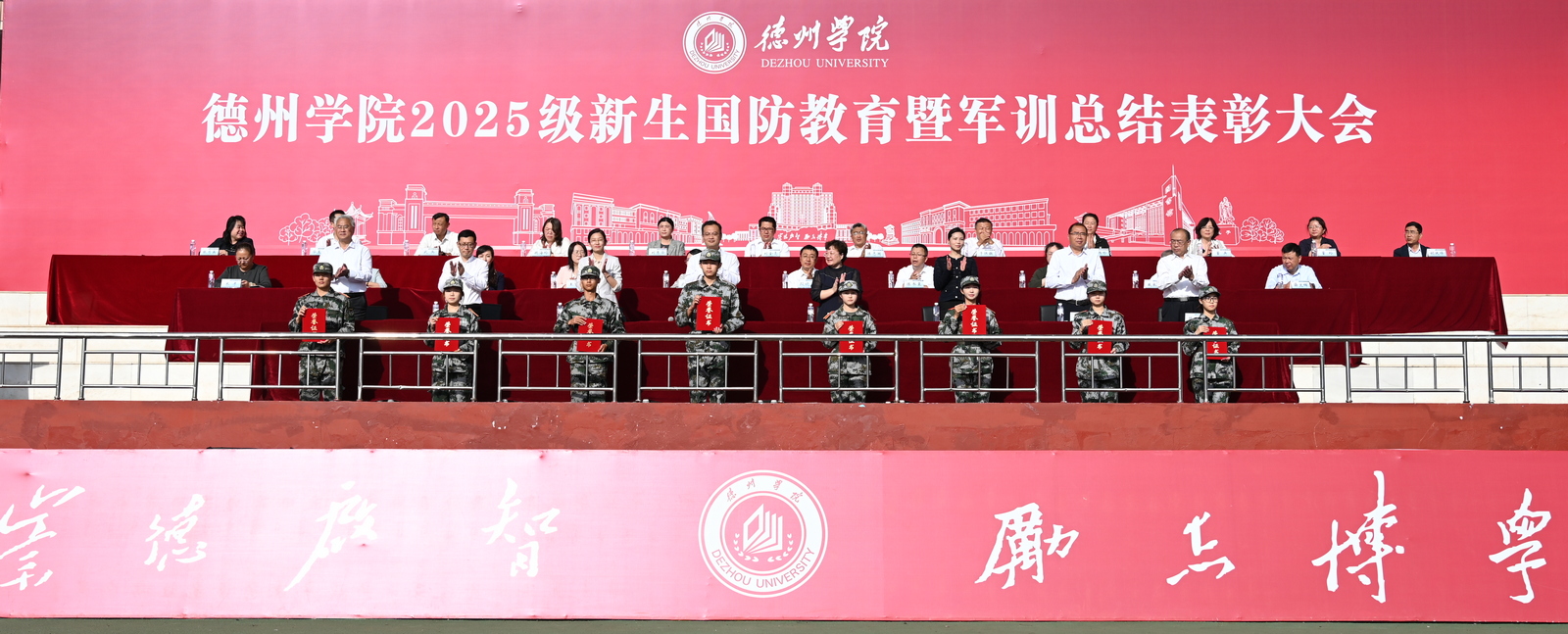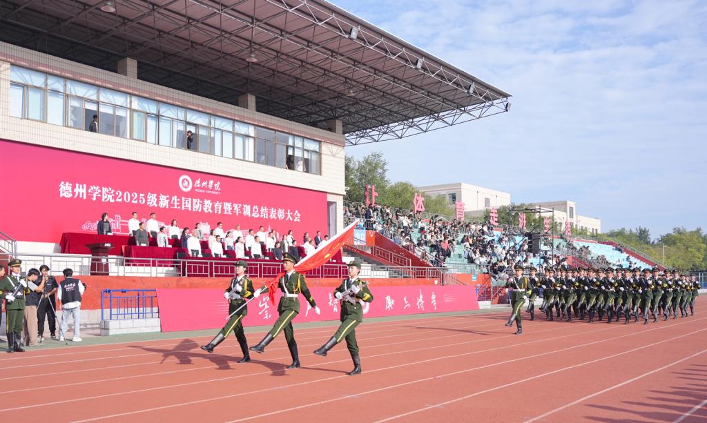 9月21日,德州学院2025级新生国防教育暨军训总结表彰大会在学校运动场举行。党委委员、副校长、2025级新生国防教育工作领导小组组长蒋涛涛,党委委员、宣传部(教师工作部)部长冯琨出席大会。